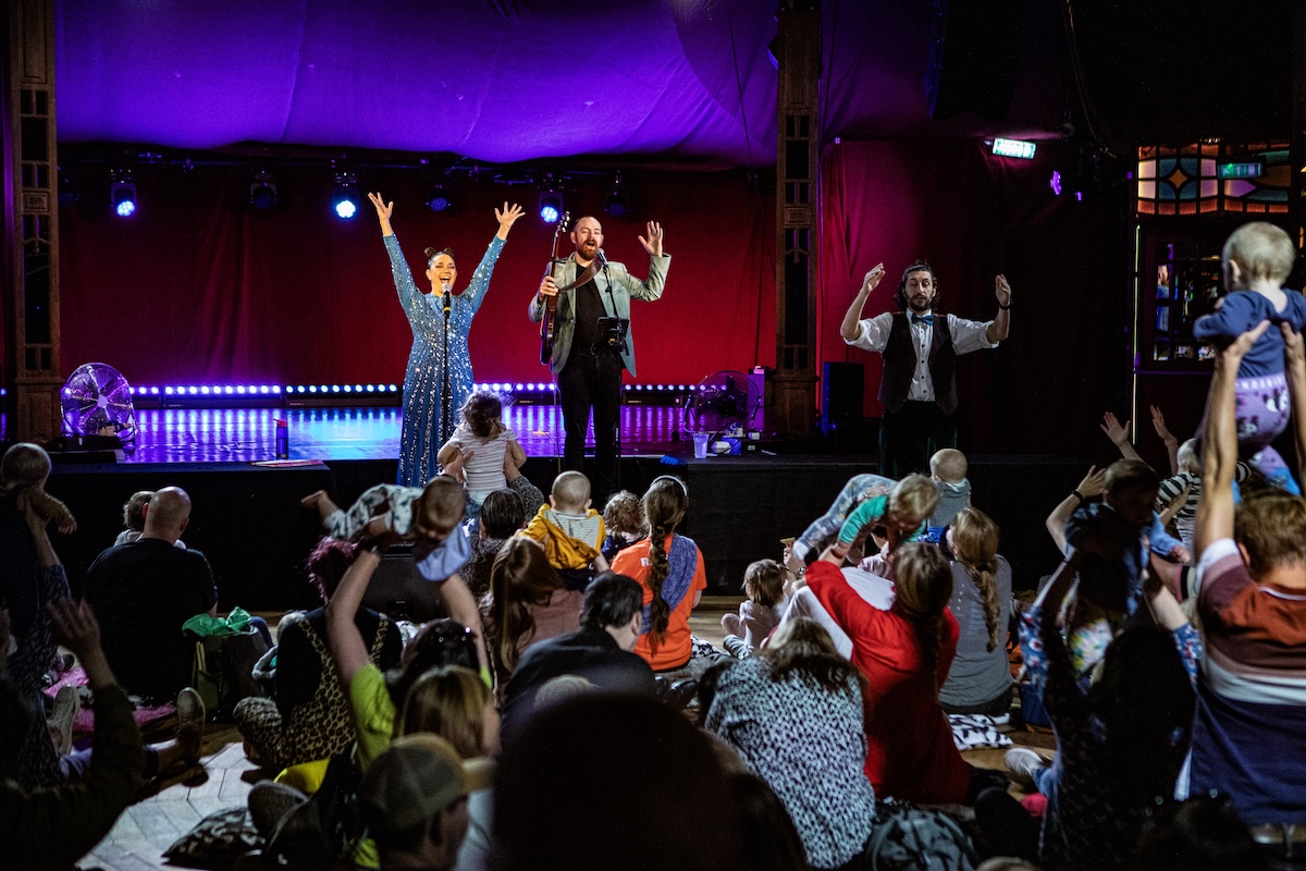 Monski Mouse, and her super talented friends present this sparkly, bonkers, live musical singalong cabaret. All the big topics covered: elephants, fish, wiggly worms, transport and the existential ways of the toddler.