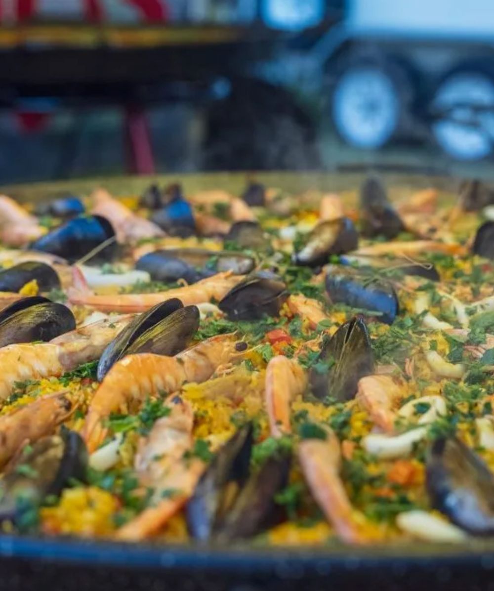 Our seafood paella is our specialty dish, with big local prawns, mussels, cockles and squid. It’s a visual spectacle and the taste matches it’s visual presence.